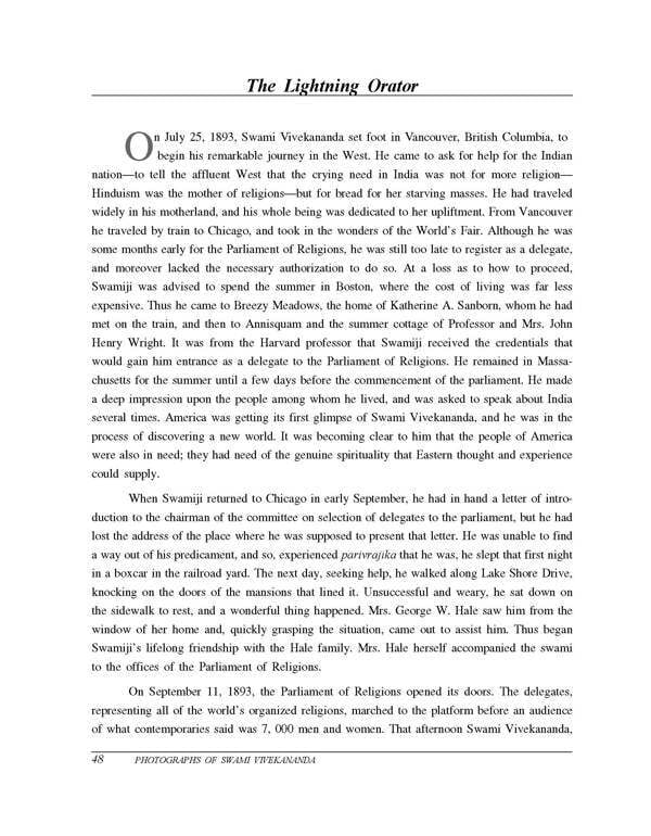 In this present volume, a comprehensive collection of photographs of Swami Vivekananda is presented to the reader that will help to visualize Swamiji by seeing him pictured in various moods and poses under diverse contexts and times. All the known photographs available of Swamiji from 1886 to 1901 are included. Almost every photograph is accompanied by a note, which gives its date and place as well as the context in which it was taken.