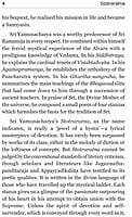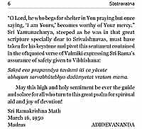 Translated by Swami Adidevananda The stotra-ratna or the Jewel of Hymns of Sri Yamunacharya is a lyrical masterpiece of devotion. Melody of dictionand loftiness of devotion are hallmarks of this hymn. It seems to be written in the language of those who have travelled up the mysticalladder. Each stanza presents outpourings of the poet’s heart in his attempt to obtain union with the Supreme. Unless the spirit ofdevotion and self-surrender enters the hearts of the reader it will not be possible to appreciate the esoteric content of the hymncompletely. But one thing strikes out nontheless and that is the faith conviction and freshness with which it reveals the spiritual moods ofthe poet-saint.
